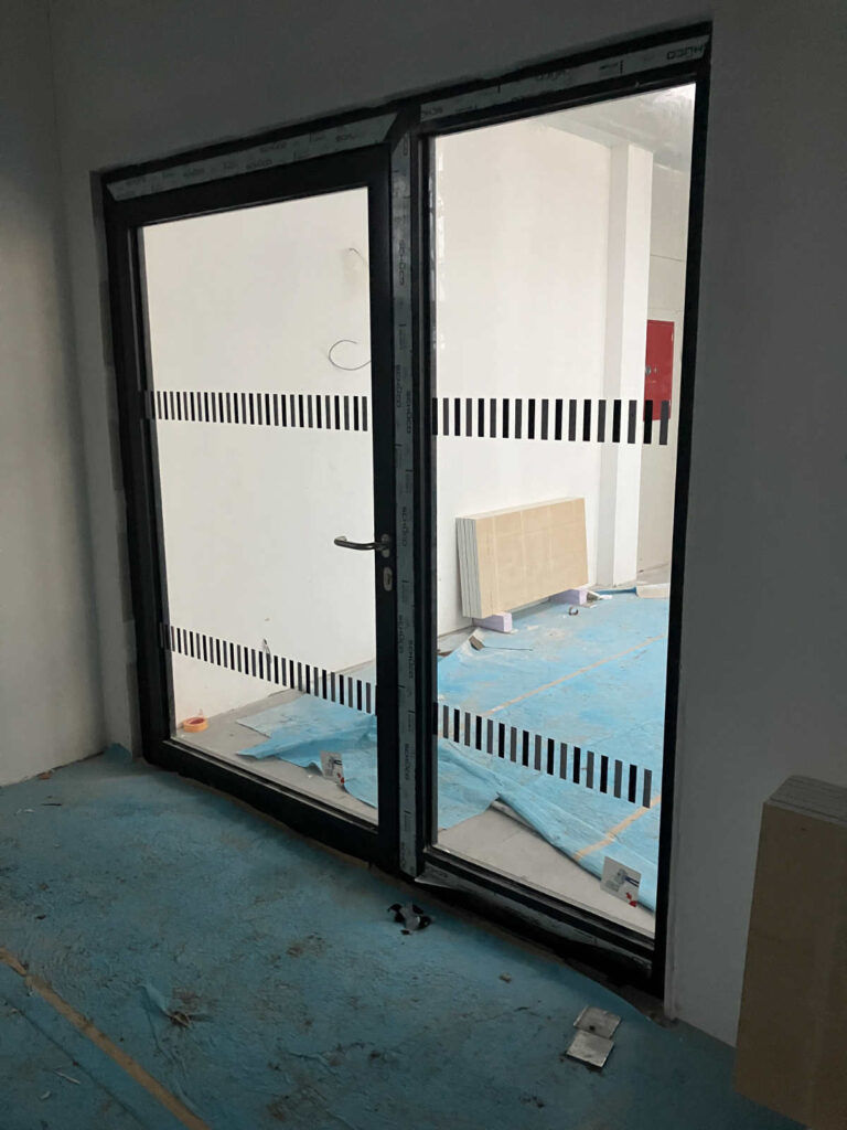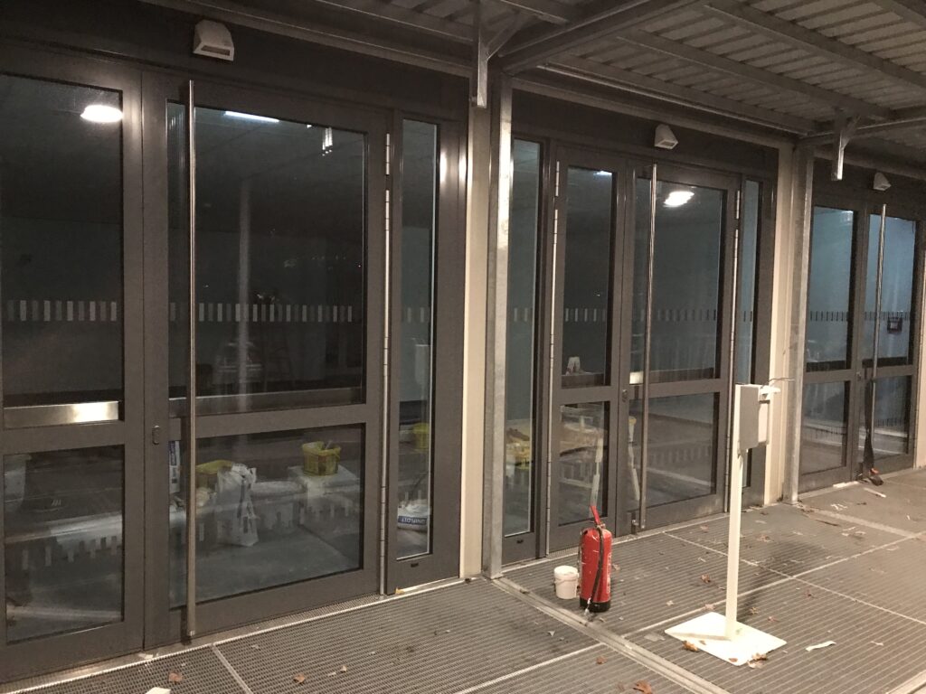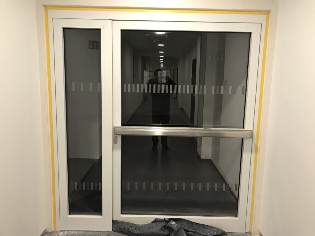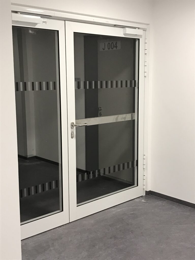 Durchlaufschutz nach Maß, inklusive MontageMarkierungen an Glasflächen für öffentliche Gebäude